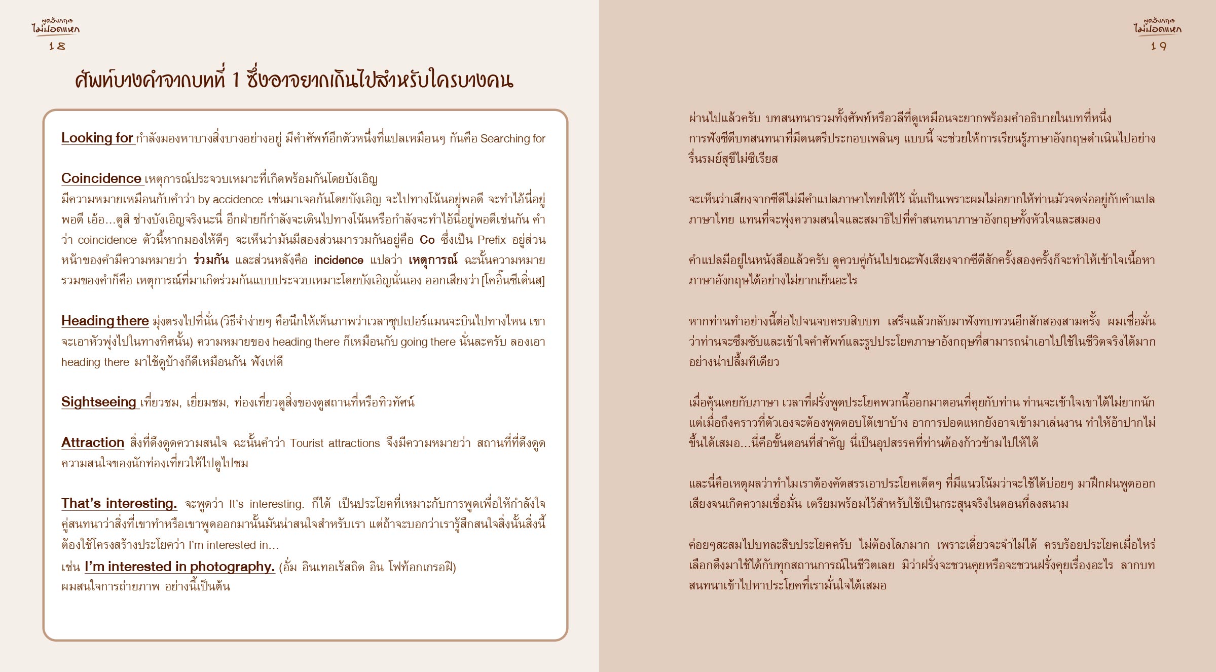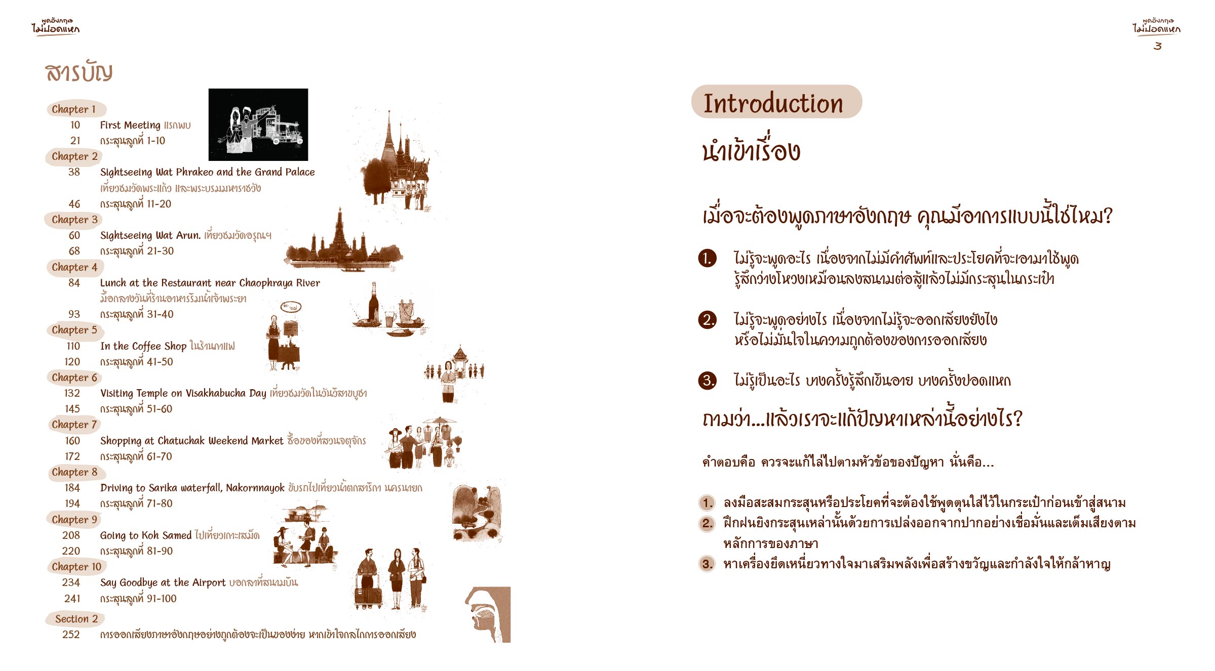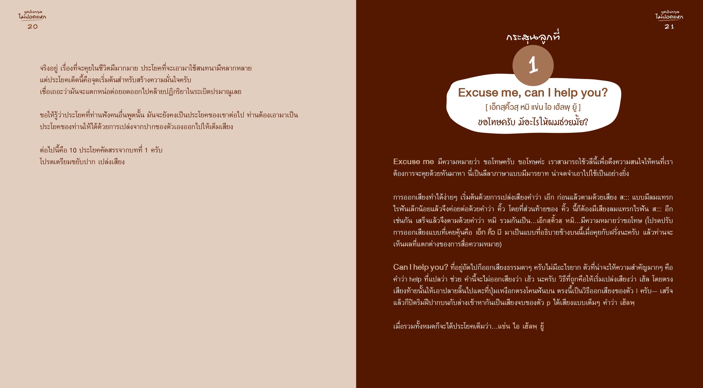 “หนังสือรวบรวมประโยคสำหรับใช้เพื่อการสื่อสารในหลากหลายสถานการณ์ของชีวิต พร้อม CD ลีลาการออกเสียงประกอบ เพื่อนำไปสะสมและตุนใส่ในกระเป๋าก่อนเข้าสู่สนามจริงได้อย่างมั่นใจ